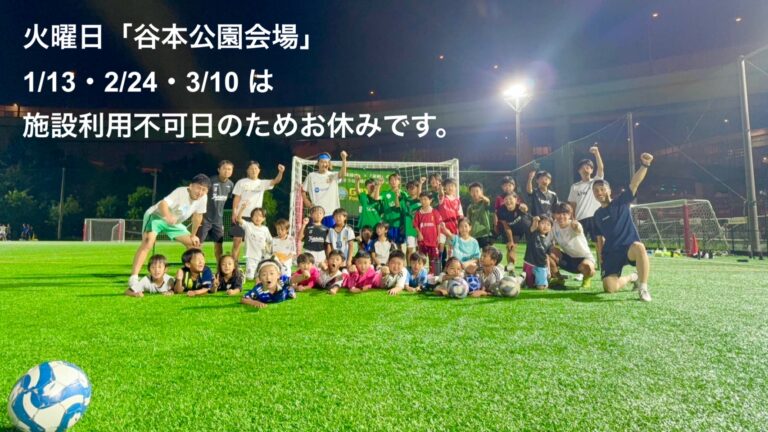 【火曜・谷本公園会場】 1月 / 2月 / 3月 施設利用不可日のお知らせ GOTSスクール「横浜校」火曜プログラムのお休みはこちらです。 ① 1/13 (火)② 2/24 (火)③ 3/10 (火) お間違いないよう、