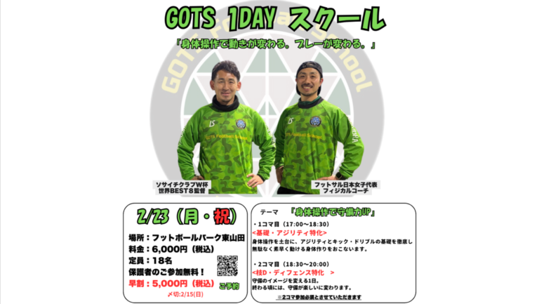 【横浜校】ついにGOTSがクラブを設立! 2026年度に新小1となる現年長さんを対象に、2月末まで「練習参加型セレクション」を行います! 参加期間:2026年2月2日(月)〜2月27(金)参加費:500円 詳細は下記の「