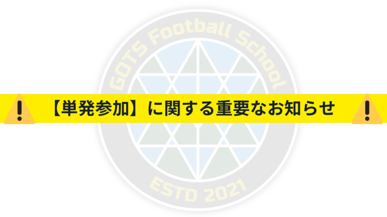⚠️【単発参加】に関する重要なお知らせ⚠️ いつもGOTSフットボールスクールをご愛顧いただきありがとうございます。 今まで多くの方にご利用いただいておりました 単発参加のサービスについて、重要なお知らせです。 <決定事